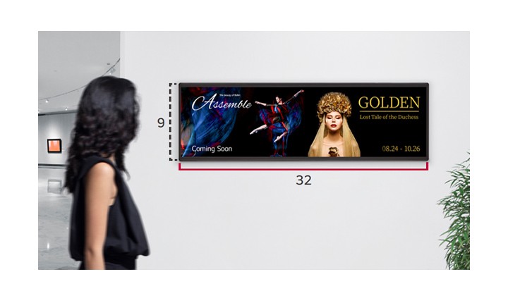 Tryb pionowy/poziomy 37-calowy wyświetlacz LG Stretch Display może być również używany w orientacji pionowej, co pozwala na elastyczne wykorzystanie w różnych sytuacjach instalacyjnych/użytkowych, zarówno w orientacji poziomej, jak i pionowej. Można go wykorzystać do wyświetlania treści zgodnie z charakterystyką i rozmiarem niewykorzystanych i pozostałych przestrzeni. |