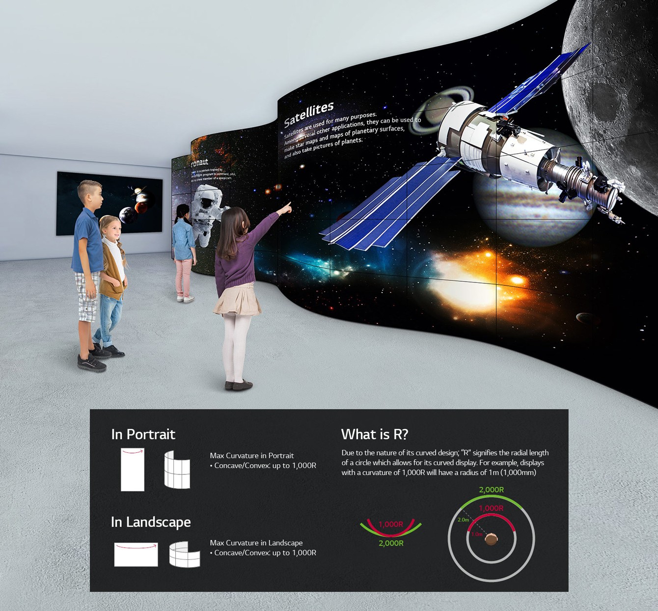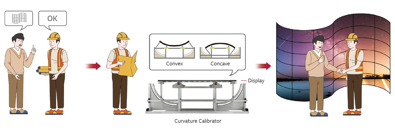 Dostosowanie na miejscu Seria EF5K umożliwia zupełnie nowe podejście do innowacyjnych i elastycznych projektów. Opcjonalny „kalibrator krzywizny (CC)*” umożliwia koordynację wyświetlaczy o różnych krzywiznach wypukłych i wklęsłych, w zależności od wymagań. Dzięki temu można szybko reagować na zmiany na miejscu, co ułatwia stworzenie przyciągającego wzrok punktu orientacyjnego.
