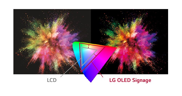 Bogata kolorystyka LG OLED Signage zapewnia bogactwo wszystkich kolorów, ożywiając je z wielką dokładnością i wyrazistością. |